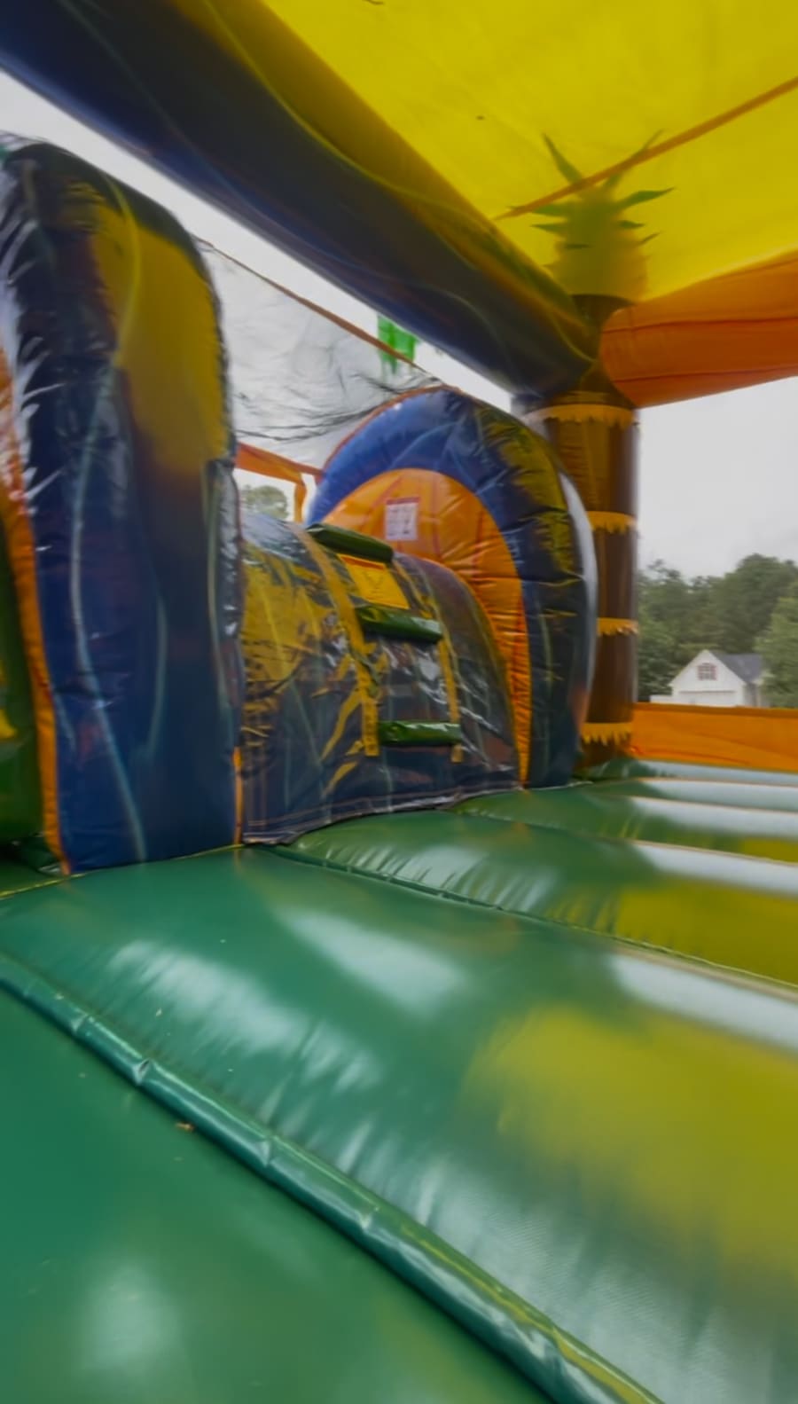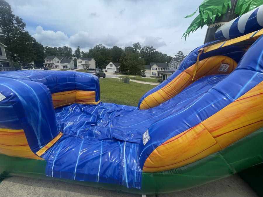 This combo works great wet or dry, making it flexible for any season. As a bounce house with slide, splash pad, and tropical theme all in one, it’s always a hit with toddlers through tweens. Built from durable commercial-grade vinyl and set up by our professional team, it guarantees safe, worry-free fun.