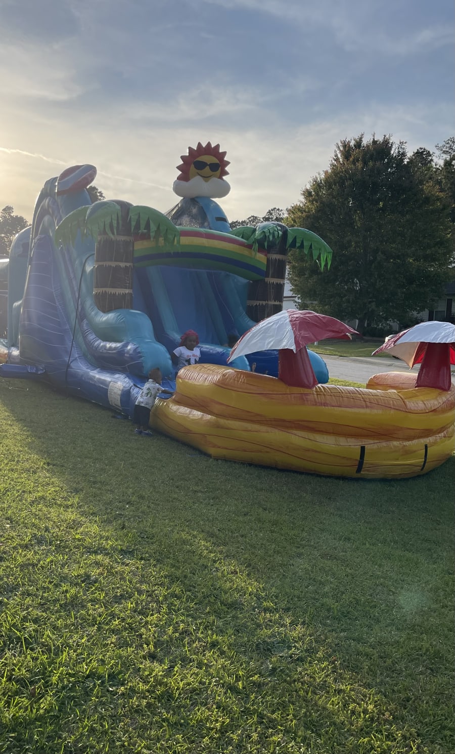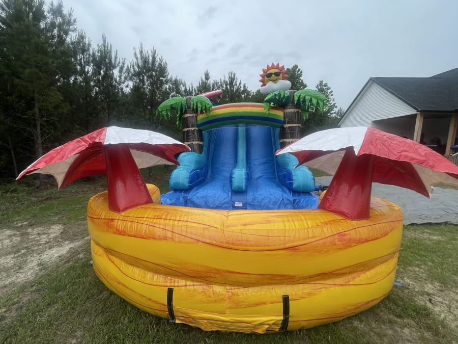 Enjoy peace of mind with our easy and reliable rental services of the 16ft Waterslide Dual Lane Sunny Vibes in Columbia, Blythewood, Cayce, Hopkins, Lexington, Dentsville, and Irmo. Our professional team ensures seamless delivery, setup, and pickup, allowing you to focus on the fun without any hassle. Simply book online or give us a call to reserve your spot and get ready to dive into an ocean of fun!